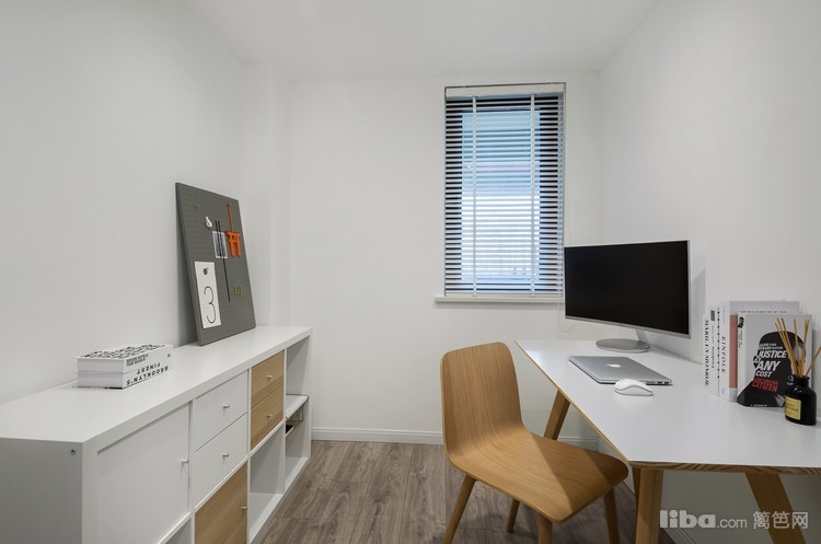 书房,房空的白,质感的木。