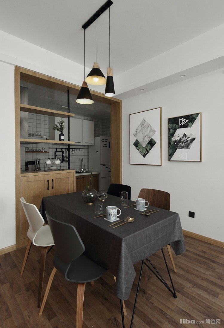 餐厅区域选取多色座椅,且不跳出整体的黑白灰色调,丰富空间。