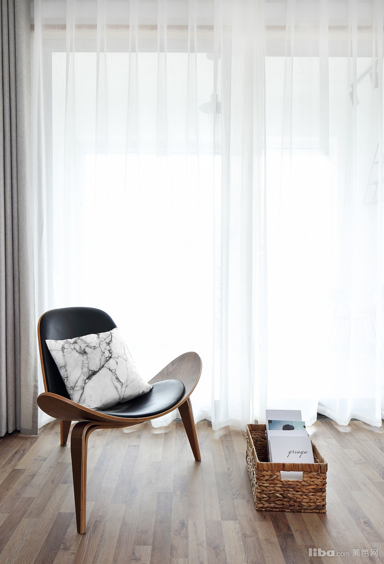 客厅区域薄纱窗巧妙地将客厅及休闲阳台进行简单分割。