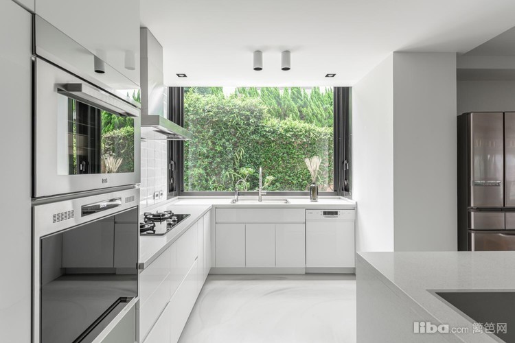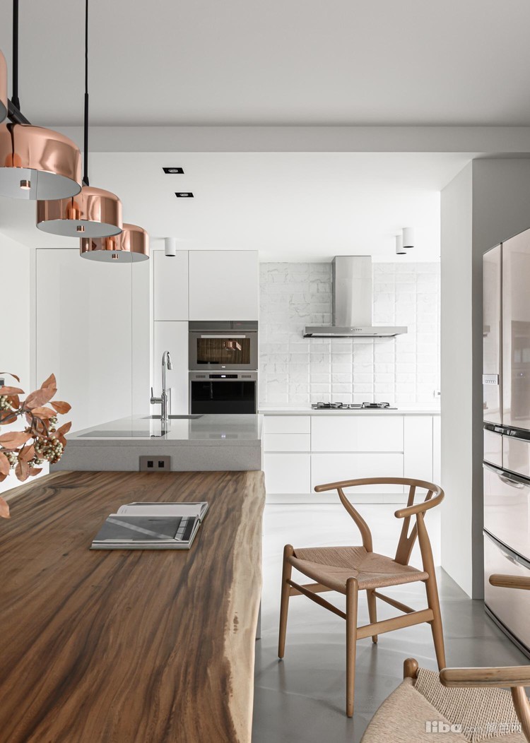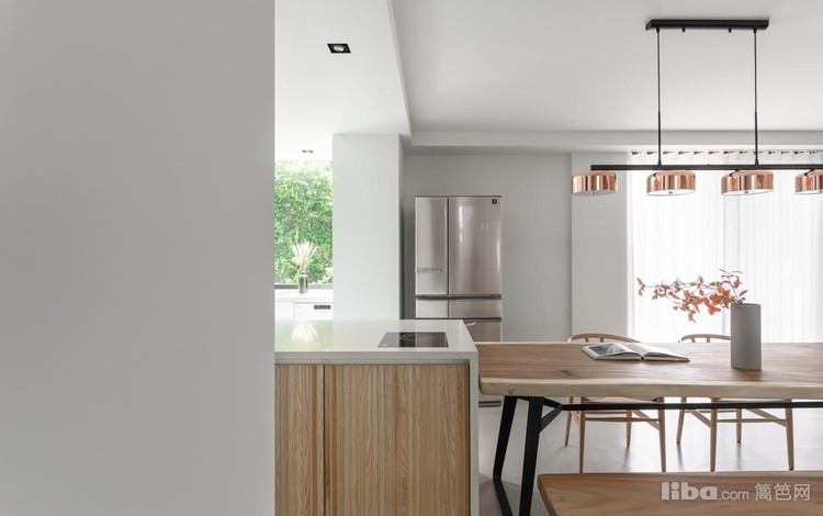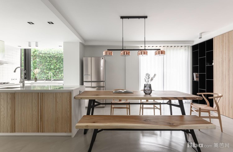 开放式厨房,将原本的封闭式厨房调整为开放式餐厨区后,光线畅通,不仅变得开阔明亮,还能以最近距离接触户外绿意。