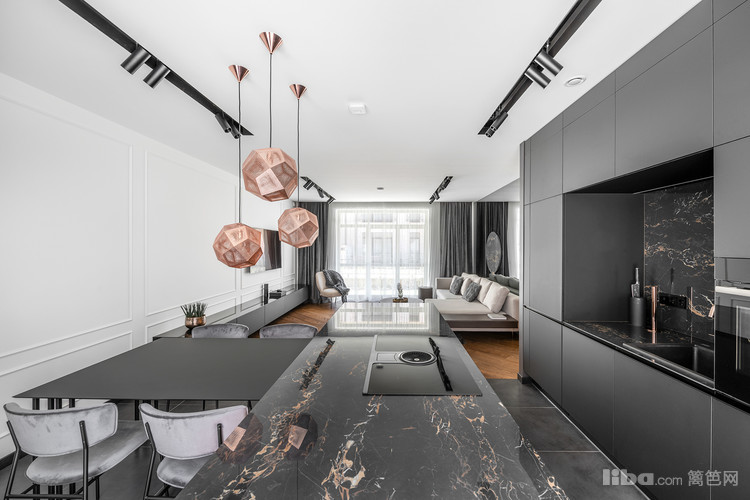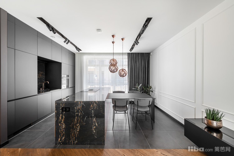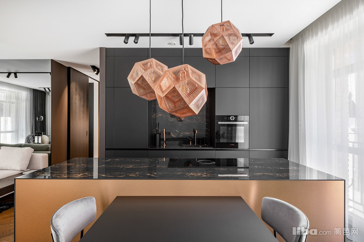 餐厅与开放式厨房相邻,一套现代质感的餐桌椅,让你感觉超越了五星级酒店的用餐环境。