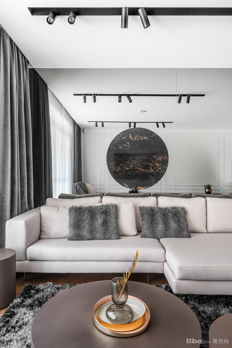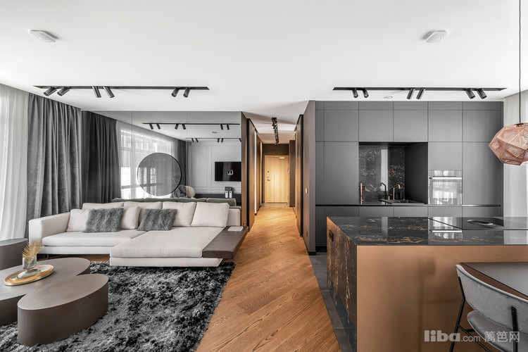 客厅舍弃了吊灯,采用筒灯贯穿全局。设计师去粗取精,为简单又富有涵养的一家子,打造精致而舒适的居所。