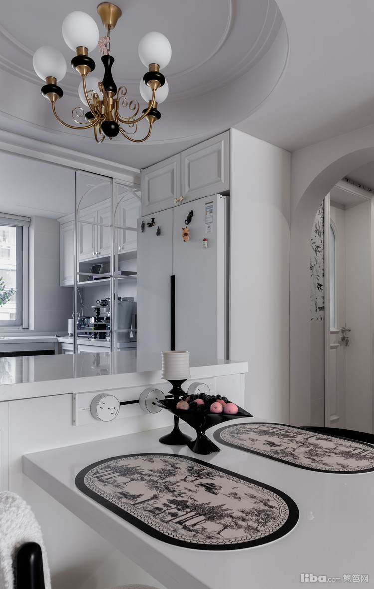 厨房做成半开放式岛台一体设计悬浮相互融合,格子窗玻璃门带来充沛的光和浪漫,谁住进去还不是个公主呢~