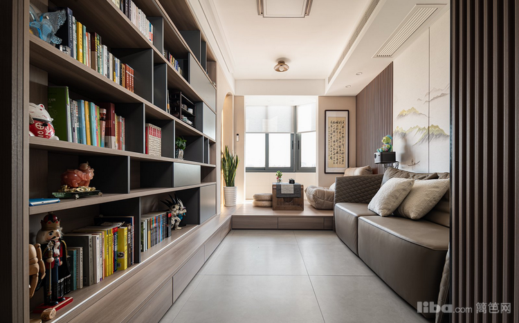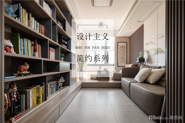 屋主喜欢读书,书籍也特别多 客厅要求要有书墙 随手拿本书,坐在阳台上晒太阳