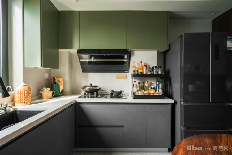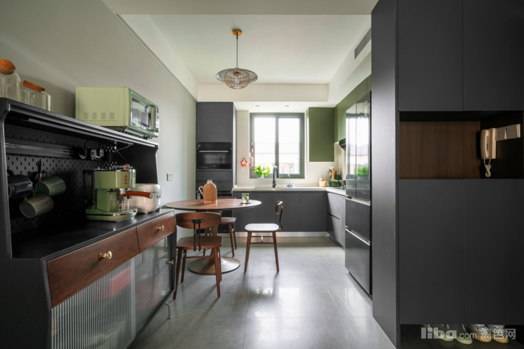 开放式厨房,颜色清新又亮丽,让人眼前一亮