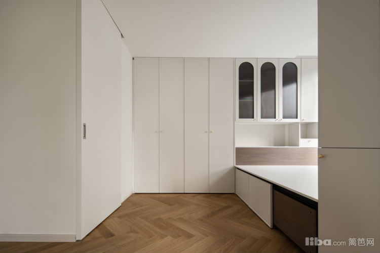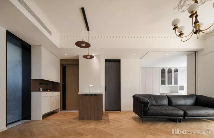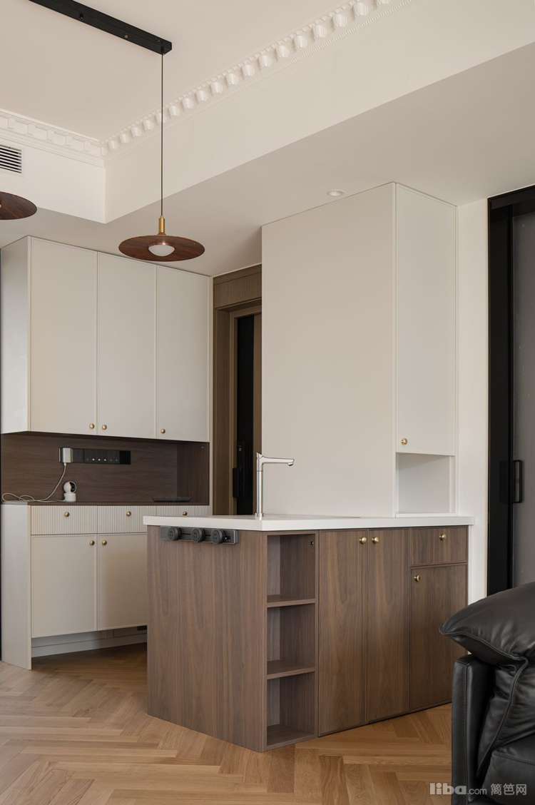 美拉德色系的法式元素餐厅,与次卧联动,打开门空间显大通透