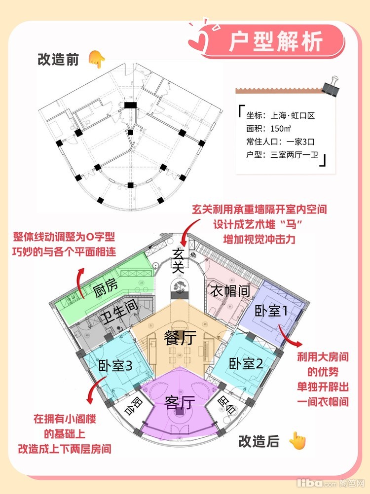 "扇 型" * 150㎡三室 教科书级O式动线