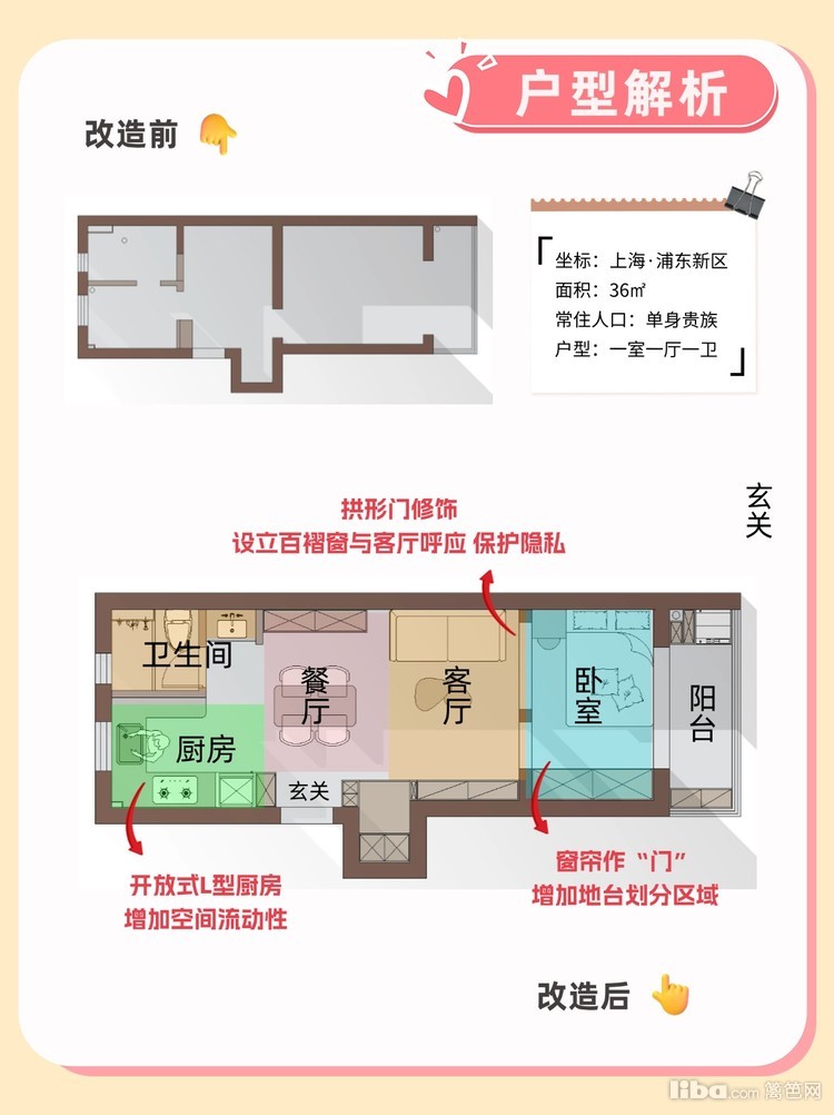 "一字型" * 36㎡一式 单身贵族的天上人间