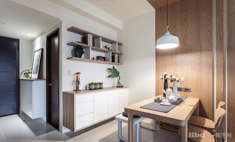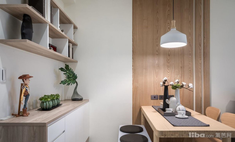 餐厅,因为家里的面积不大,这个餐厅是设计的一个亮点,原木餐桌给人一种安静的感觉。