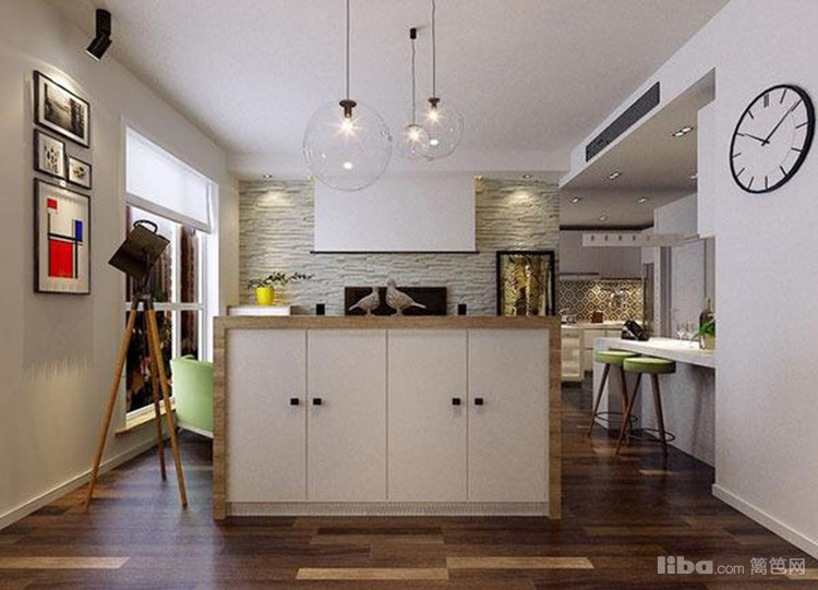 可储纳的柜体隔断划分出的动区以及静区范围,用餐区捨弃了一般正式的餐桌安排,改以整体橱柜替代,藉此换取流畅动线以及开阔视野。
