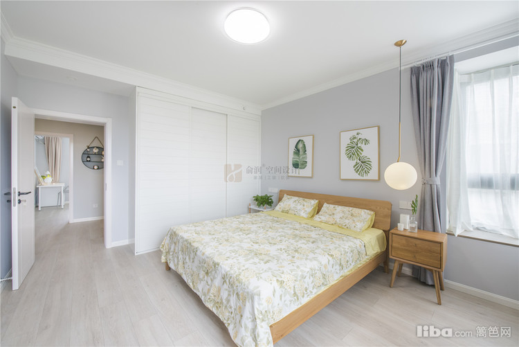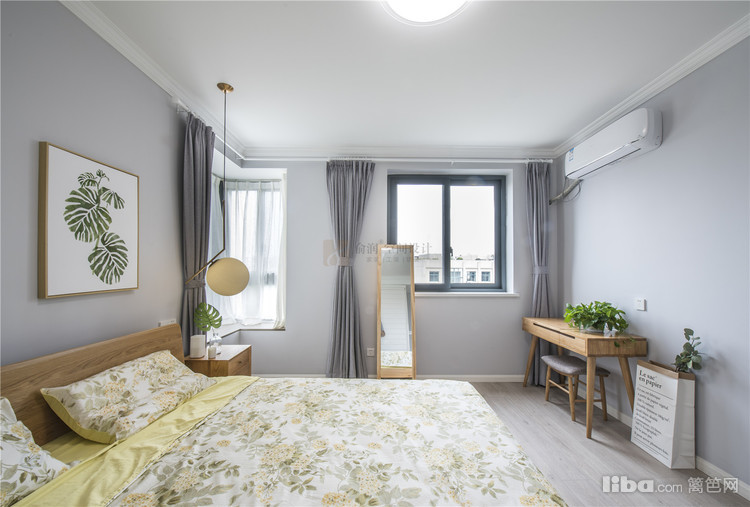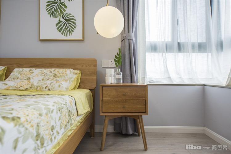 03_卧室 卧室——采用大面积的原木色,床、床边柜、梳妆台、落地镜甚至灯和画框都选用了原木色,阳光透过飘窗稀稀落落照了进来,即便在家,也能感受自然的美妙。
