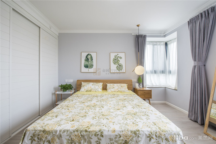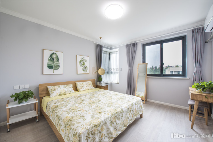 小碎花的床单与自然清新的挂画绿植相结合,舒服淡雅。