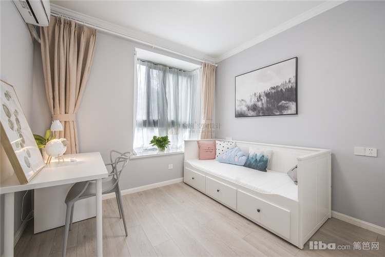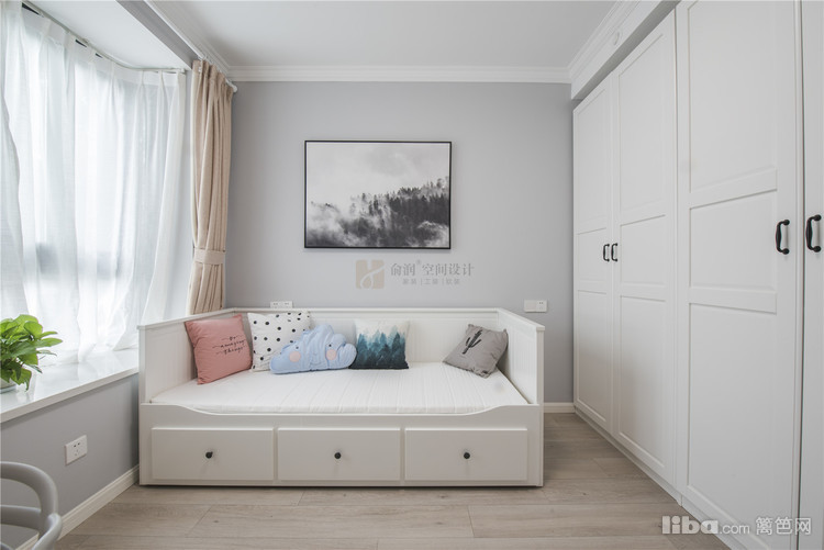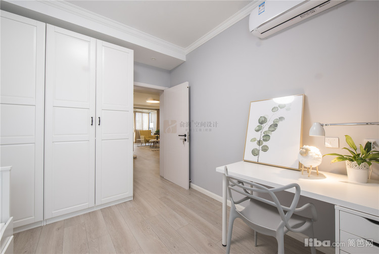 04_书房 书房——白色的沙发床搭配白色书桌以及白色整墙衣柜,和时尚的浅灰色碰撞,将人引领入静谧的氛围,闲暇时安静的品味书中的点滴也是另一种美的享受。
