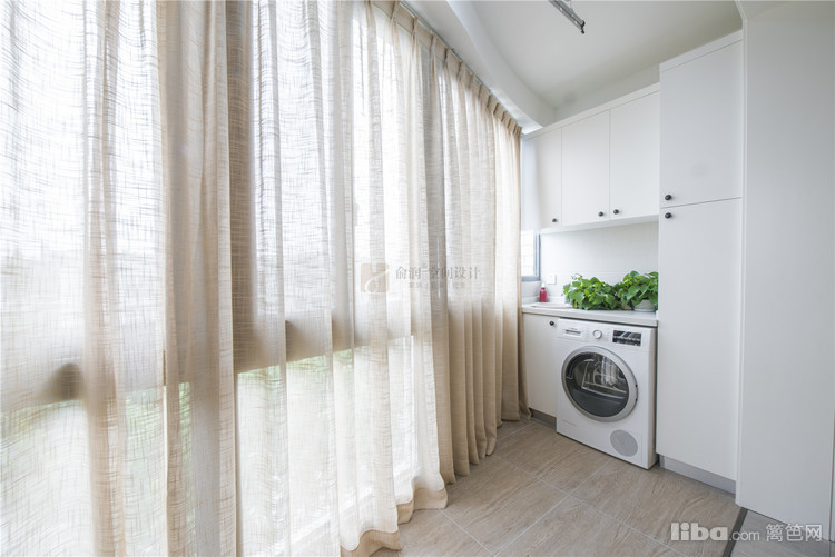 07_阳台露台 阳台——利用台面与墙体之间凹进去的空间,做了一组白色的收纳柜,洗衣柜下嵌入墙。