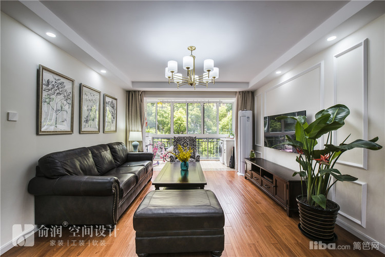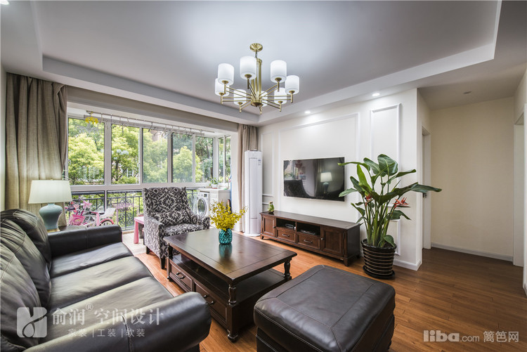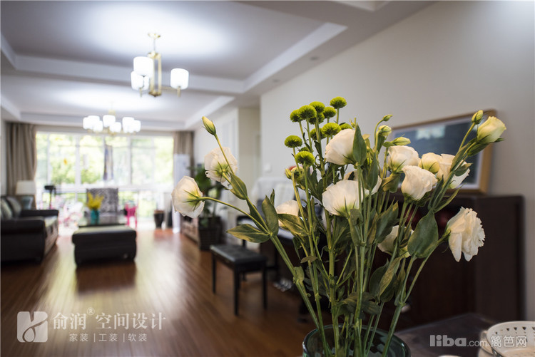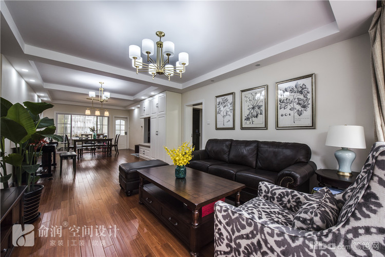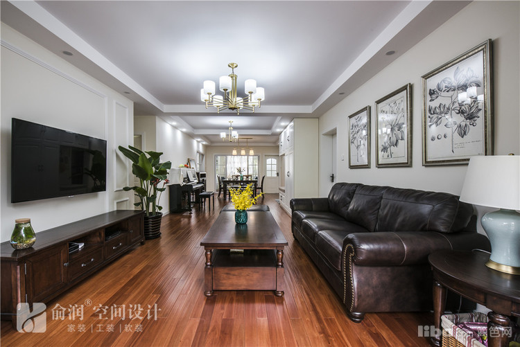 客厅做了四周吊顶,中间配以比较简洁的吊灯,大气婉约。