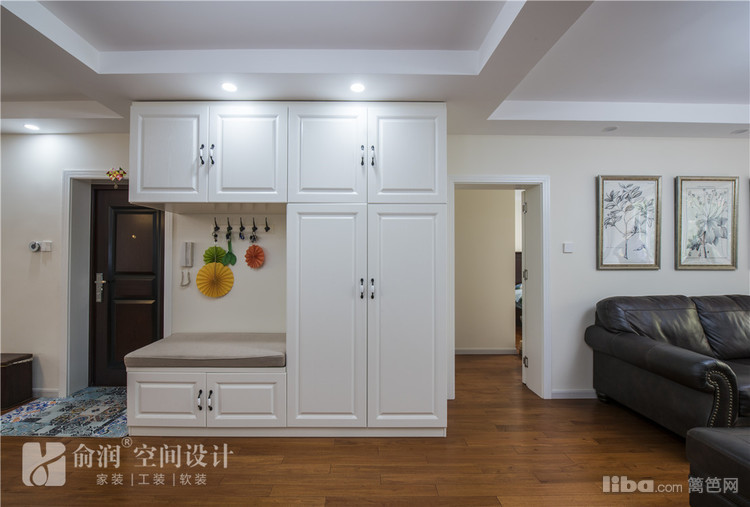 进户门左侧的储物柜,超级强大的储物功能,兼具鞋凳,挂钩则可以放孩子的书包,大人的钥匙等等。