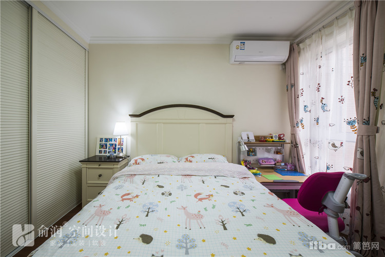 女儿房:宝贝的房间寝具色调稍浅。粉色系的窗帘带来一点点公主的感觉哦。