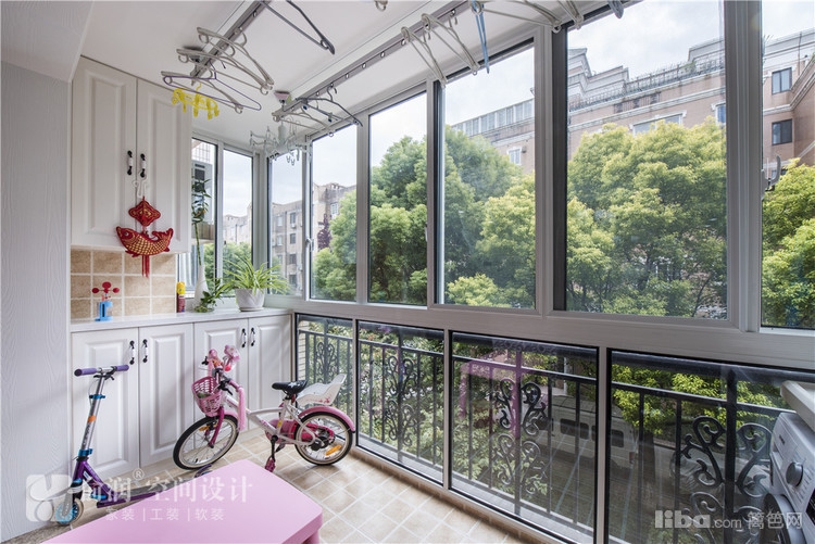07_阳台露台 阳台的设计师一面做了橱柜柜,兼绿植的搁置台,另一面是洗衣机的家。