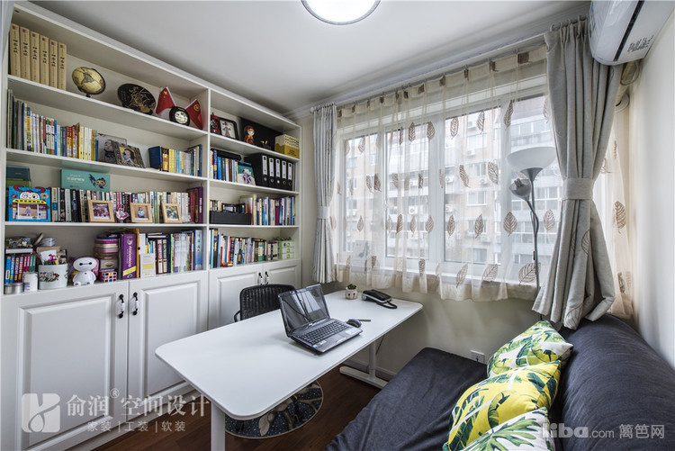 04_书房 书房——原有的朝北阳台这边隔出的一间休闲以及办公区域。整面墙的书柜,简洁的书桌。