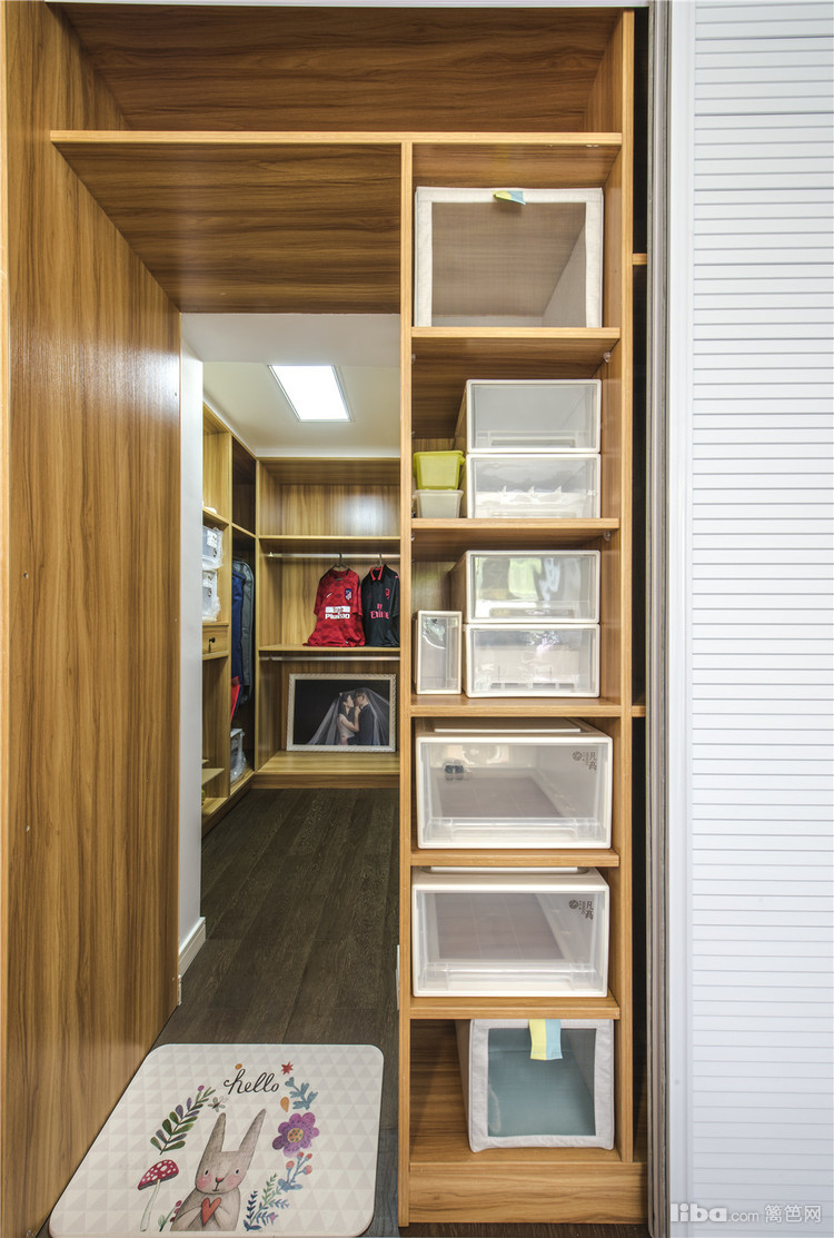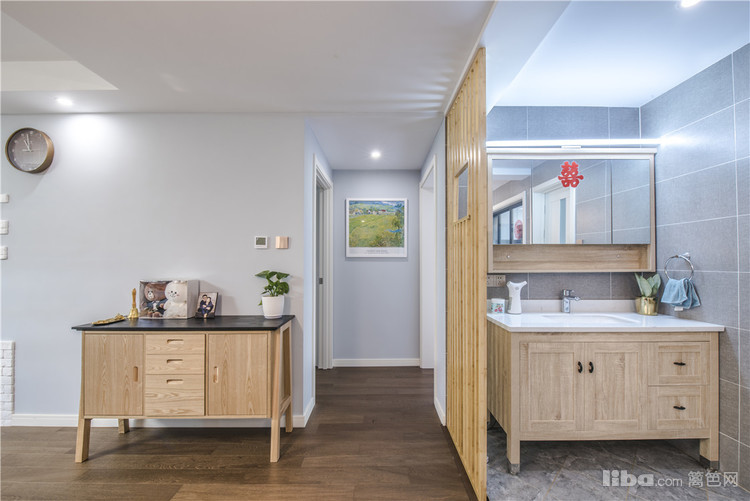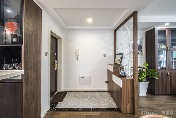 玄关:将原有的内开防盗门改成外开尽可能的不占用客厅面积,进门这块采用半高的鞋柜作为玄关既实用又美观。