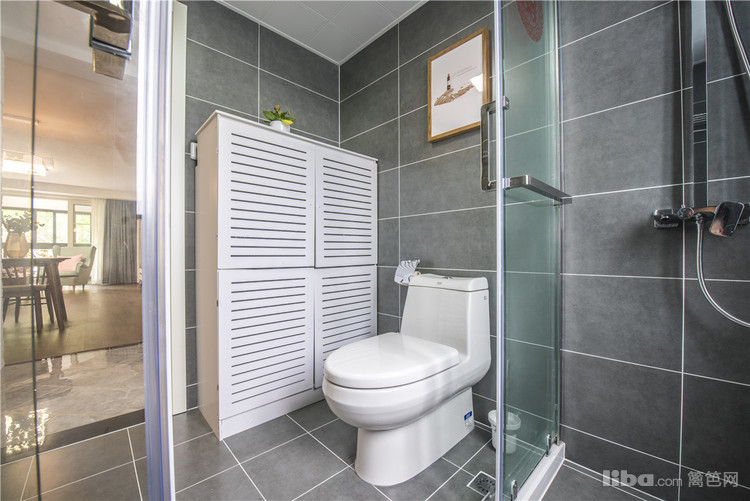 次卫除了装饰画,墙面地面统一灰色,将卫生间的私密空间誓将冷酷进行到底。