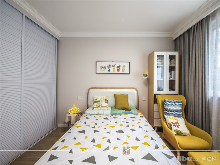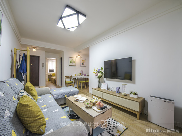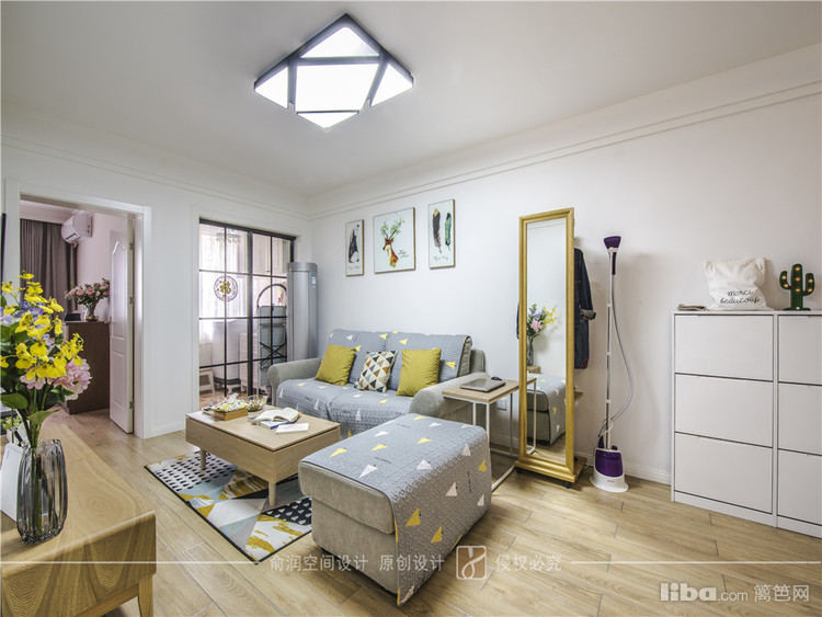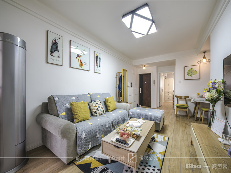 设计理念 定位北欧简约,整体色调以白色为基调,以灰色做软装大色系,黄色作为空间提亮之笔。
