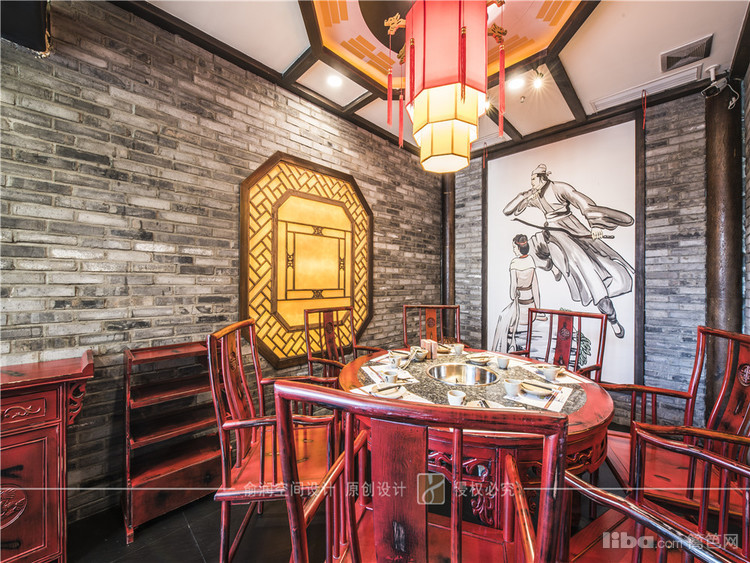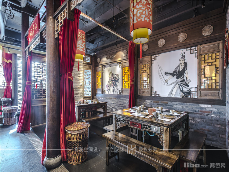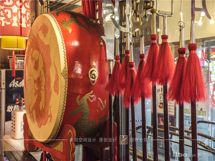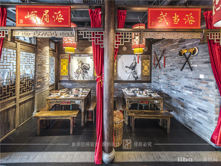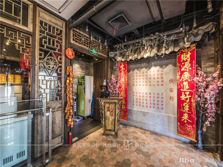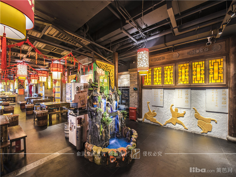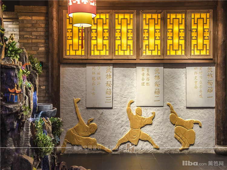 在火锅店的门厅装饰中,融入了武林风元素。