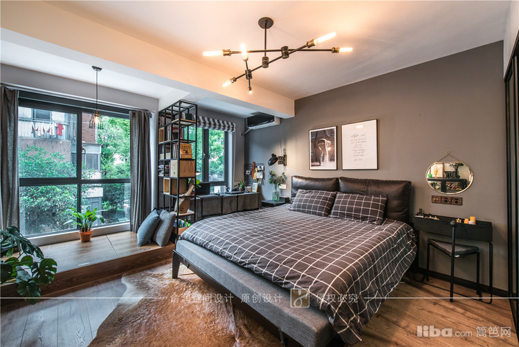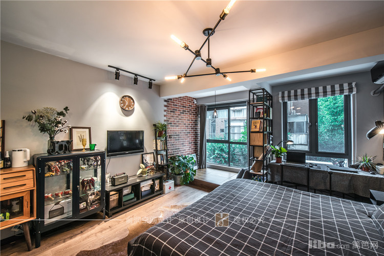 卧室满满的复古风-铁艺的元素,红砖文化,原阳台区改成了小地台,供女主人平时练瑜伽用,也可以增加储物空间。