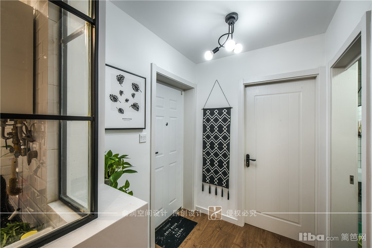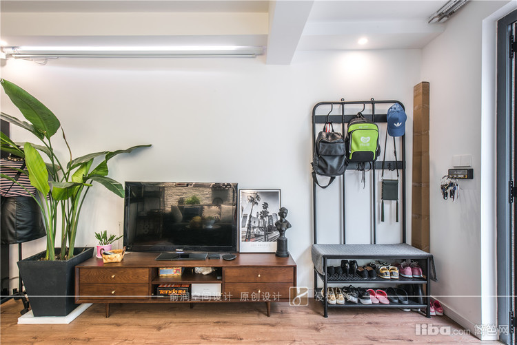 门区没有做太多的固定式的墙面装饰面,采用的是成品的工业鞋柜,简单的色调,灵活的摆放。
