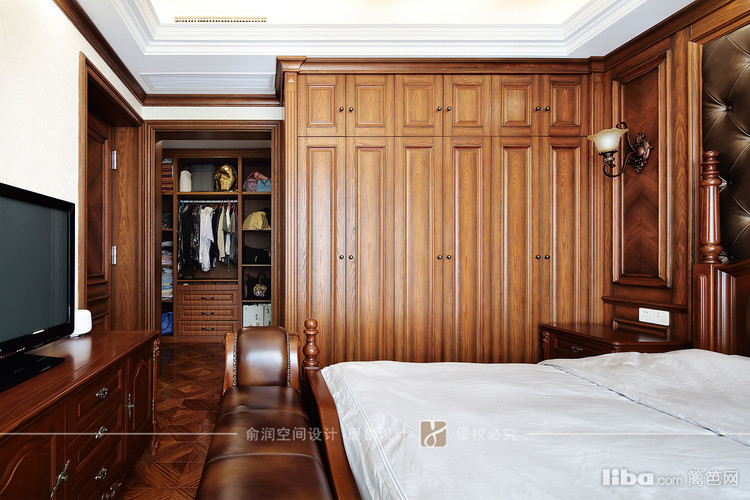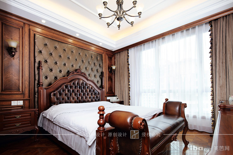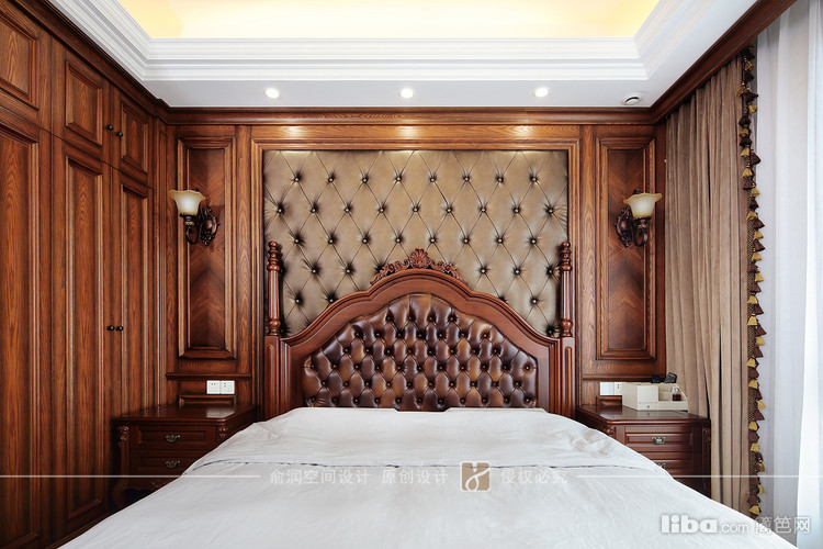 03_卧室 卧室作为主人的私人空间,主要以实用舒适和功能性为考虑的重点,整体在卧室灯饰的选择,造型优雅的铁艺灯与美式风格的主题相符,同时也不会显得太过繁复