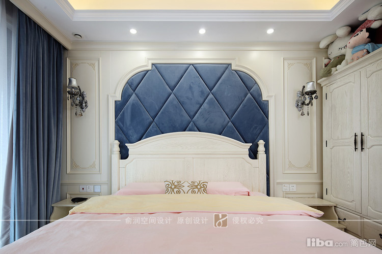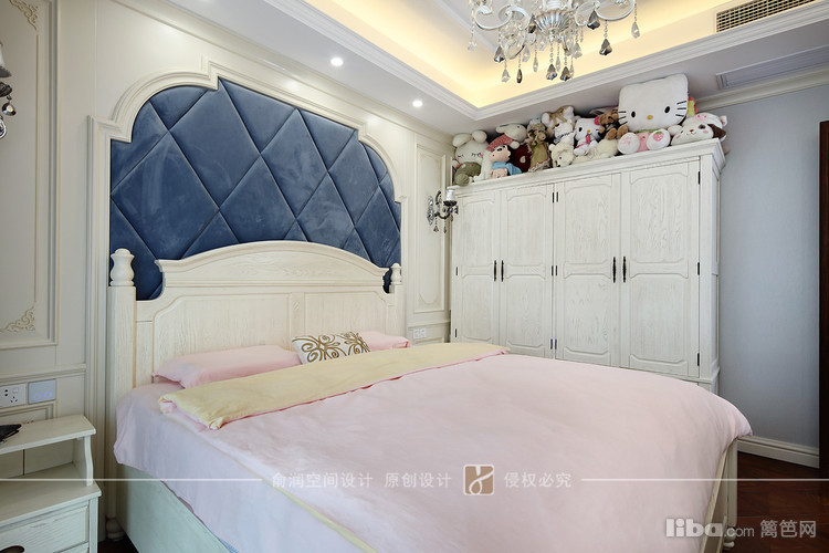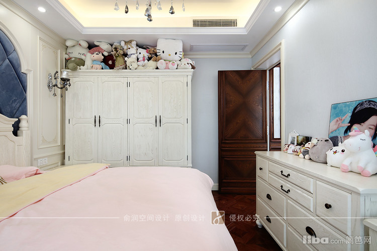 温馨甜美的公主房。高纯白实木床、围合圆吊灯,浅色打底,嫩色点缀,搭配出清新可爱的韩式范儿。