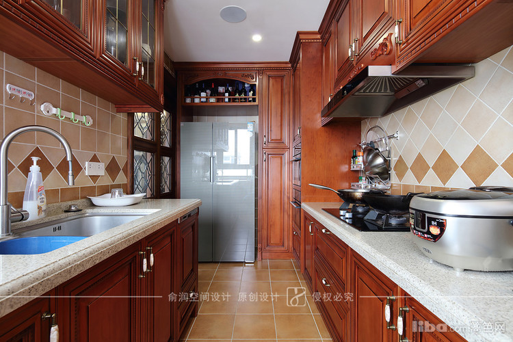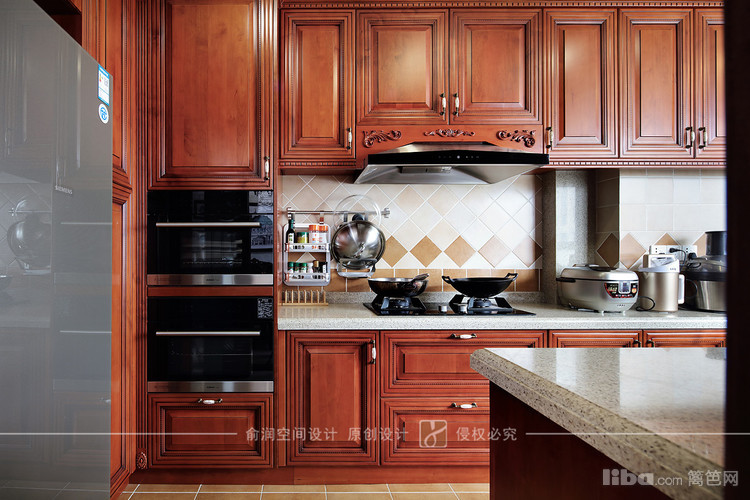 05_厨房 爱上餐厨时光,从最美丽的厨房开始!棕咖色橱柜,暖色调的仿古砖,一同营造美好的厨房时光。