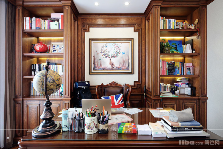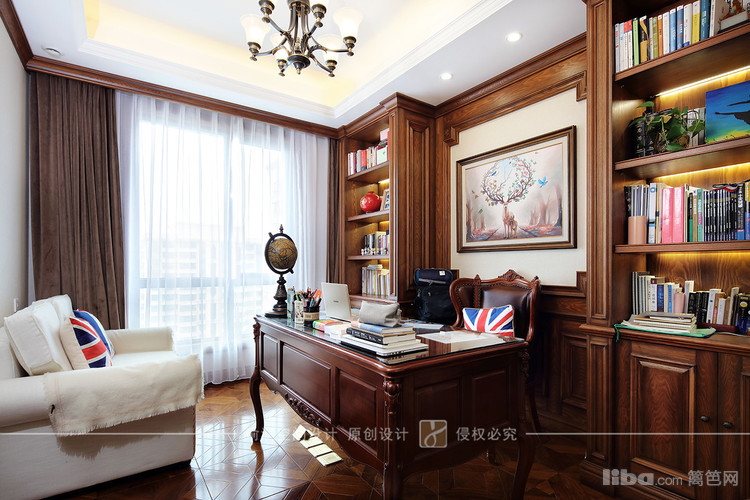 04_书房 书房延续了客厅的大气稳重基调,配以同色系的木地板,给人更安逸闲静之感。