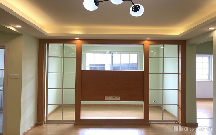 设计师很擅长空间分割,通过电视背景造型及两侧的移门,分割出一个视野很好的书房