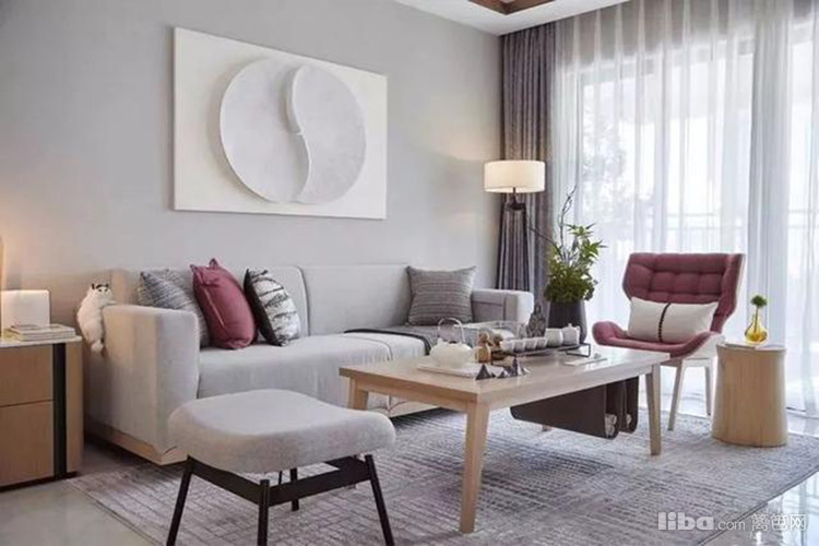 客厅的背景色以高级灰为主,融入温馨的原木色,火热的红色,还有纯净的白色,简约的设计充满现代时尚感,搭配暖暖的灯光,超级温馨。