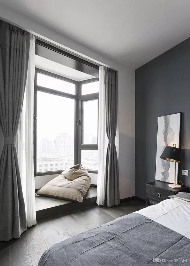 主次卧室都已灰色调为主,深浅不同的灰色营造出丰富的层次感,次卧设了地台,视野开阔,光线充足,放一个懒人沙发,就是一个惬意的休闲之所了
