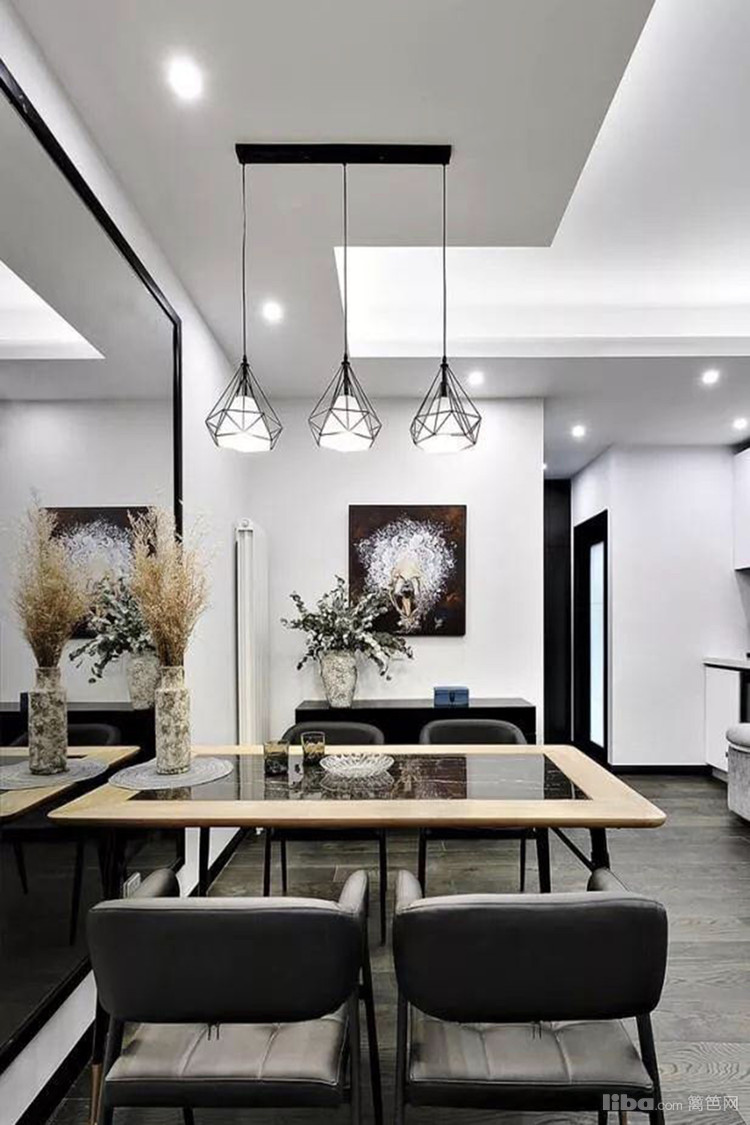 餐厅墙壁上装了一面镜子,一来起到扩容的效果,使得室内面积更显大,二来镜子也是极好的装饰品,这样把餐厅上的东西都映在镜子里,非常有意境,餐桌椅造型简洁,但不失质感,非常上档次
