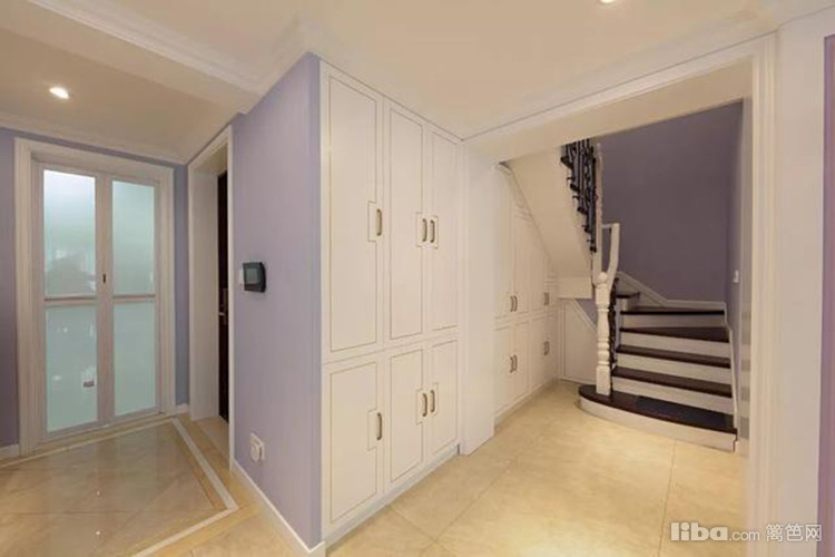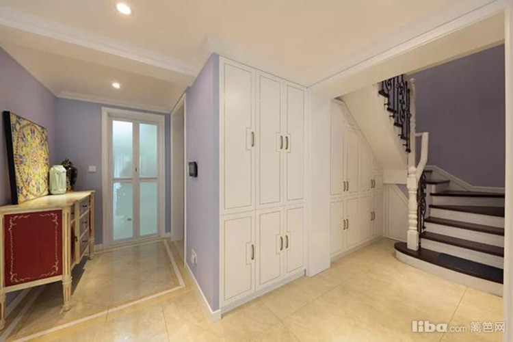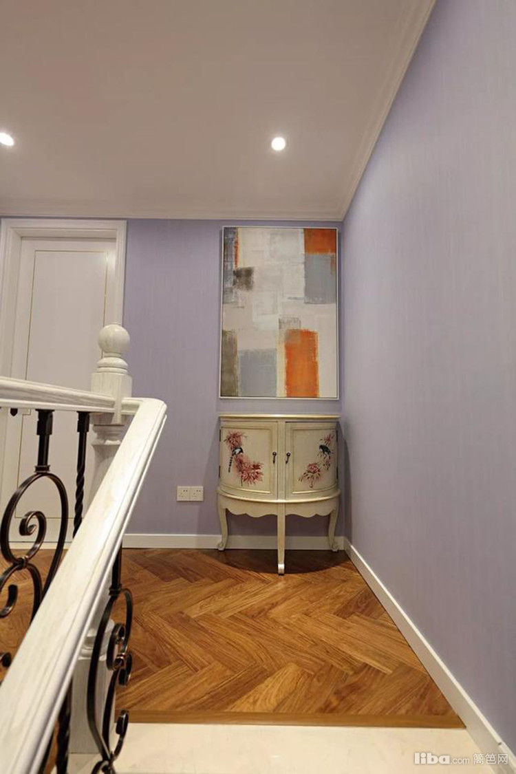 阁楼上的装饰画虽是墙壁处理,但配合一个象牙白三角柜的端景作用,更显落落大方的精致韵味