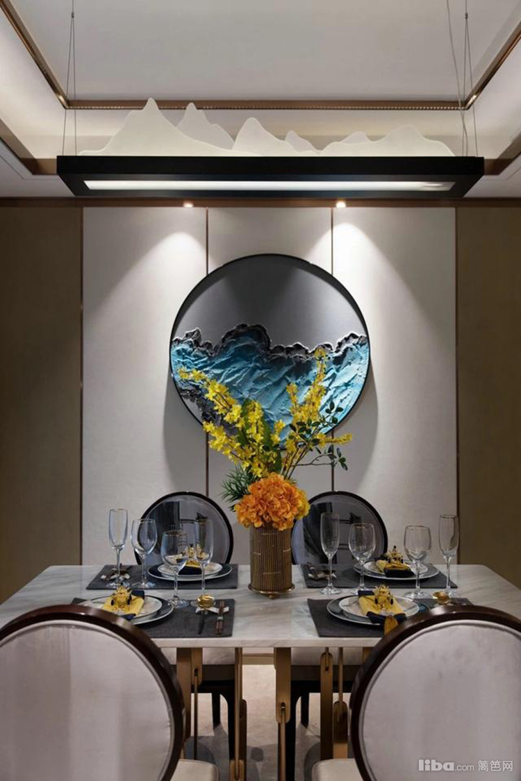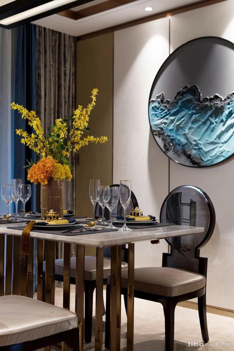 餐厅背景墙的挂画,运用传统色调和图案,质朴而富有情调