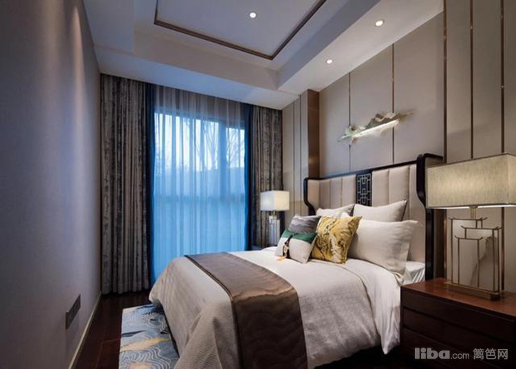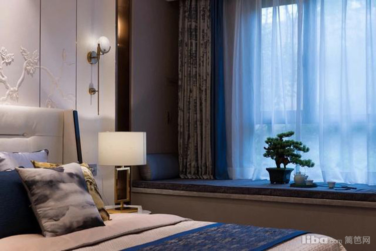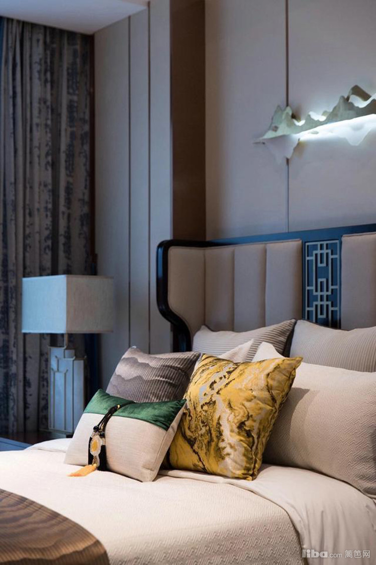 次卧延续了整体风格,床头山水形状的设计非常贴合