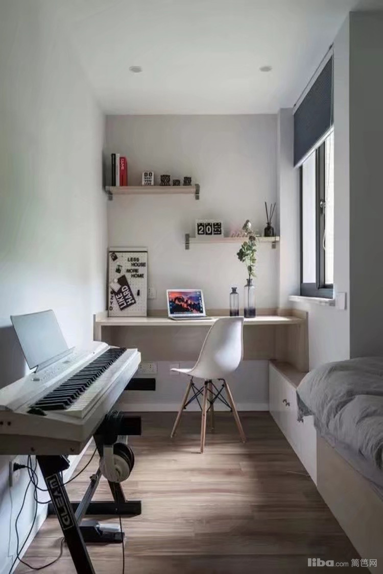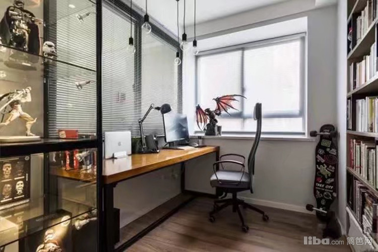 嵌入式的书架和玻璃展示架,加上了藏光的设计,让这个书房空间变得更为时尚和有趣