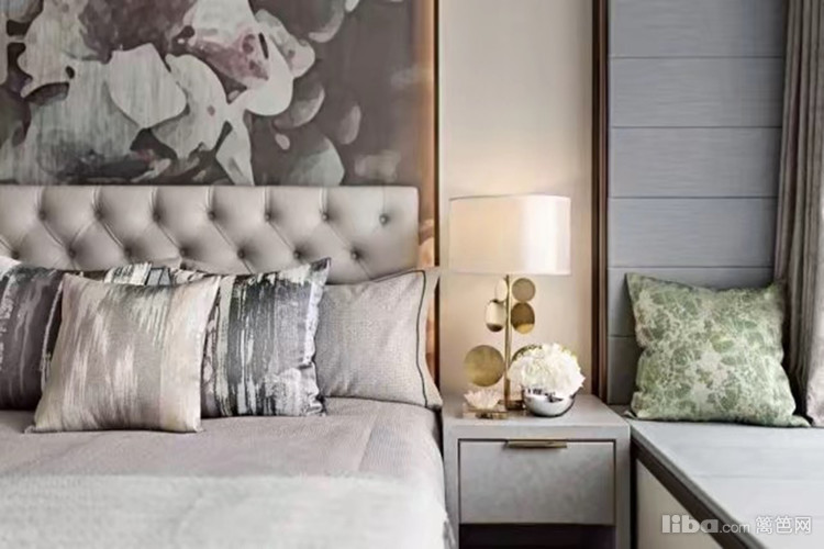主卧以米色和灰色相搭配,营造了一个格外温馨舒适的睡眠空间