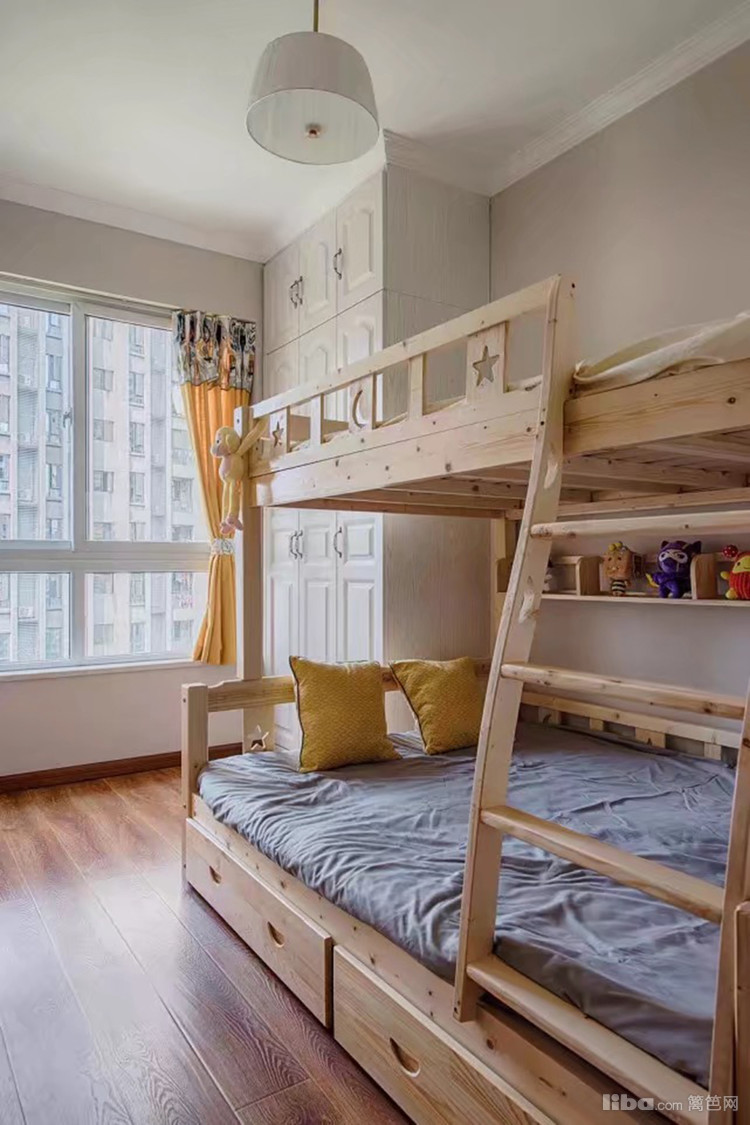 空间不大的儿童房靠墙放置,余下空间作为小朋友的玩耍区