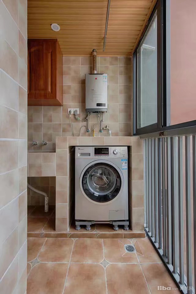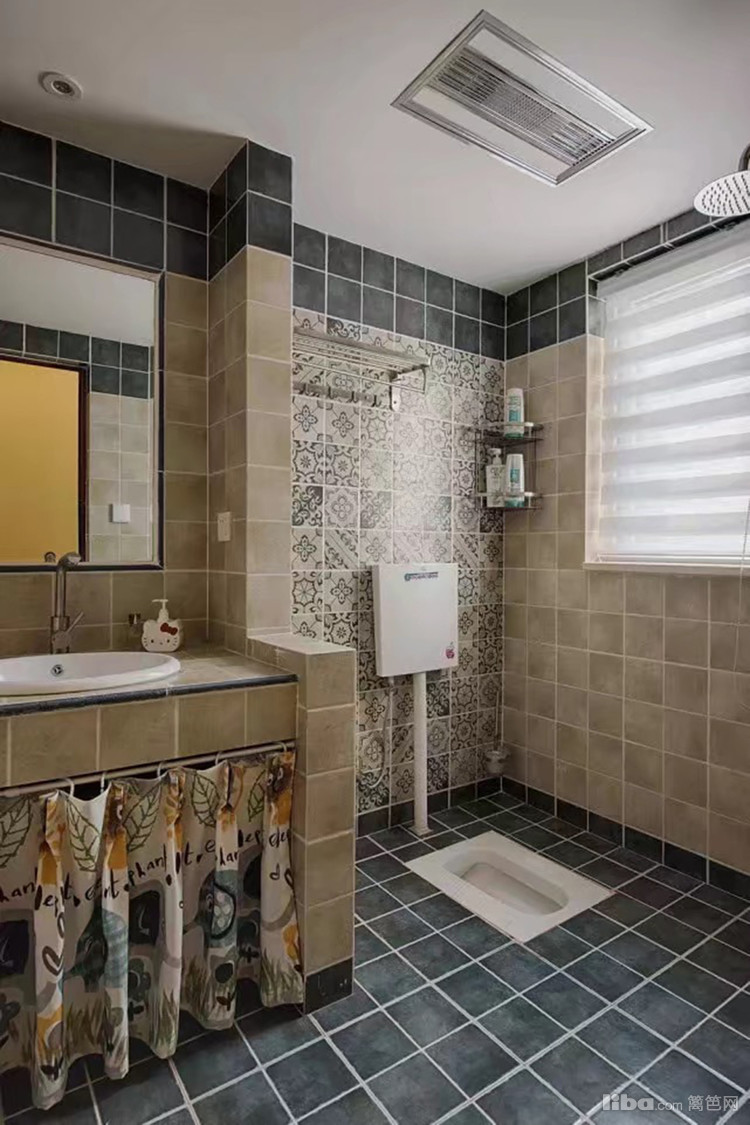 淋浴区以花砖拼贴出这一区域,深色小方格地面光滑整洁,在淋浴区一旁的洗漱台与整个卫浴空间都形成风格上的对比。时尚与古朴的结合