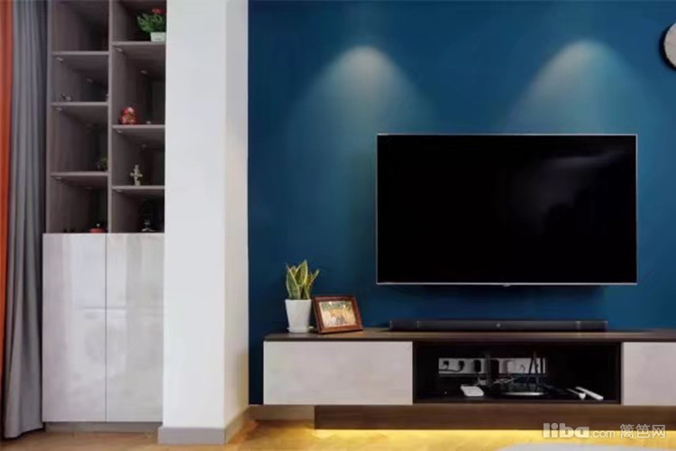 电视柜和展示柜皆为定制,液晶下的线路都藏在电视柜中