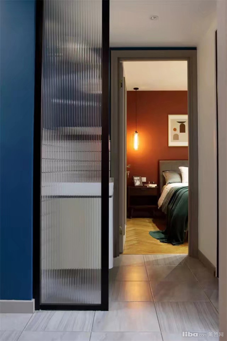 长虹玻璃隔断将干湿分离的浴室略做遮挡,玻璃比常见的木质花格看起来轻盈几分,打扫起来比较便捷