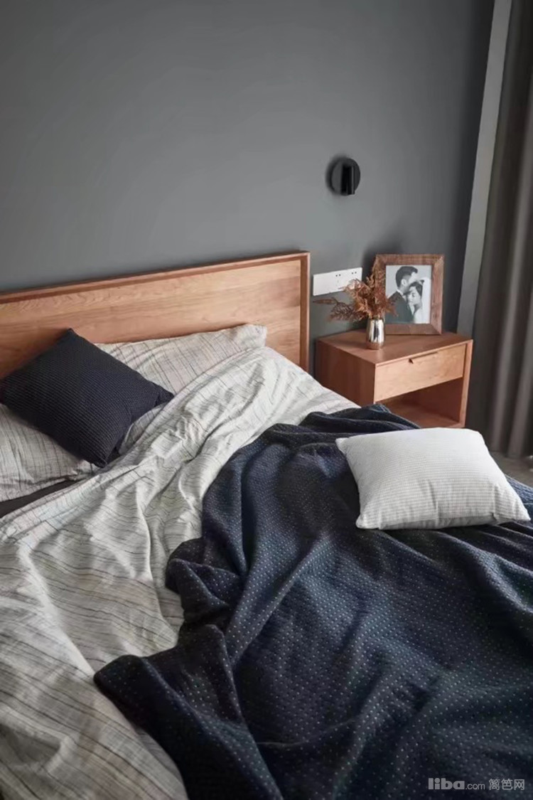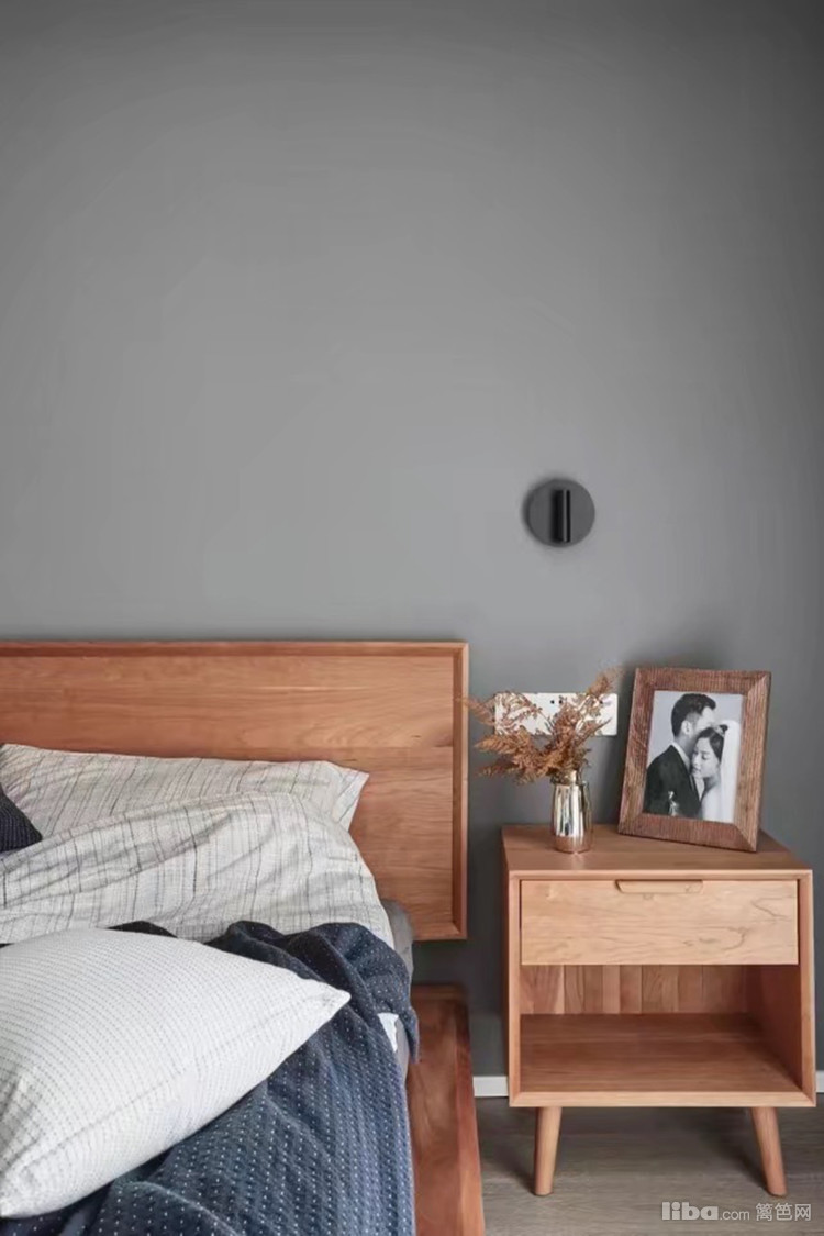 卧室用了局部的灰色,配以木色家居,床头灯很简约可爱