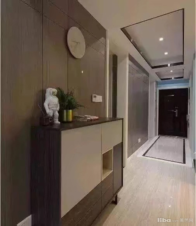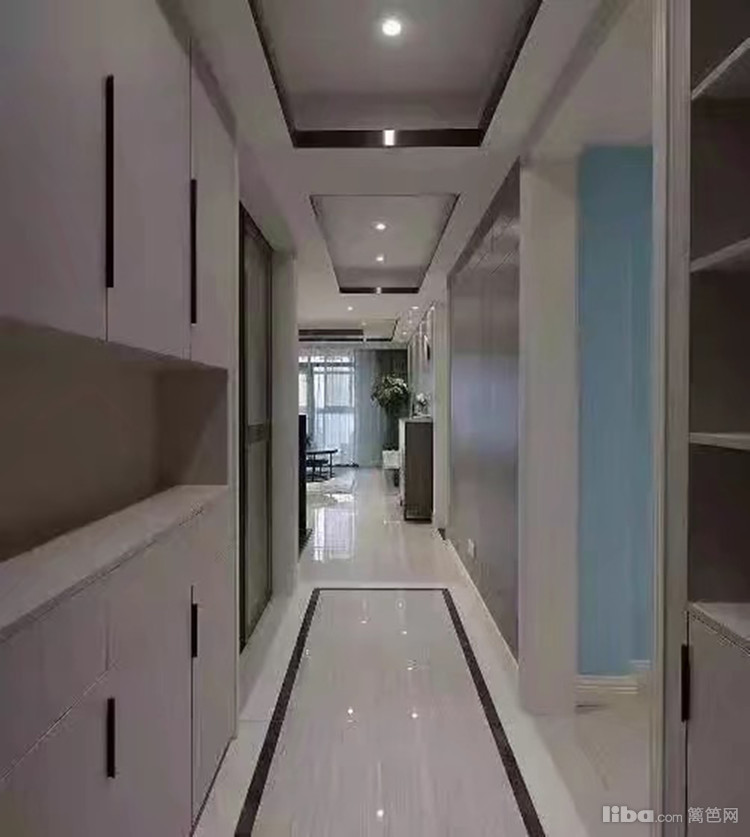 玄关两边都是收纳柜设计,实用性极强,造型吊顶搭配灯光,有种往后延伸的视觉效果