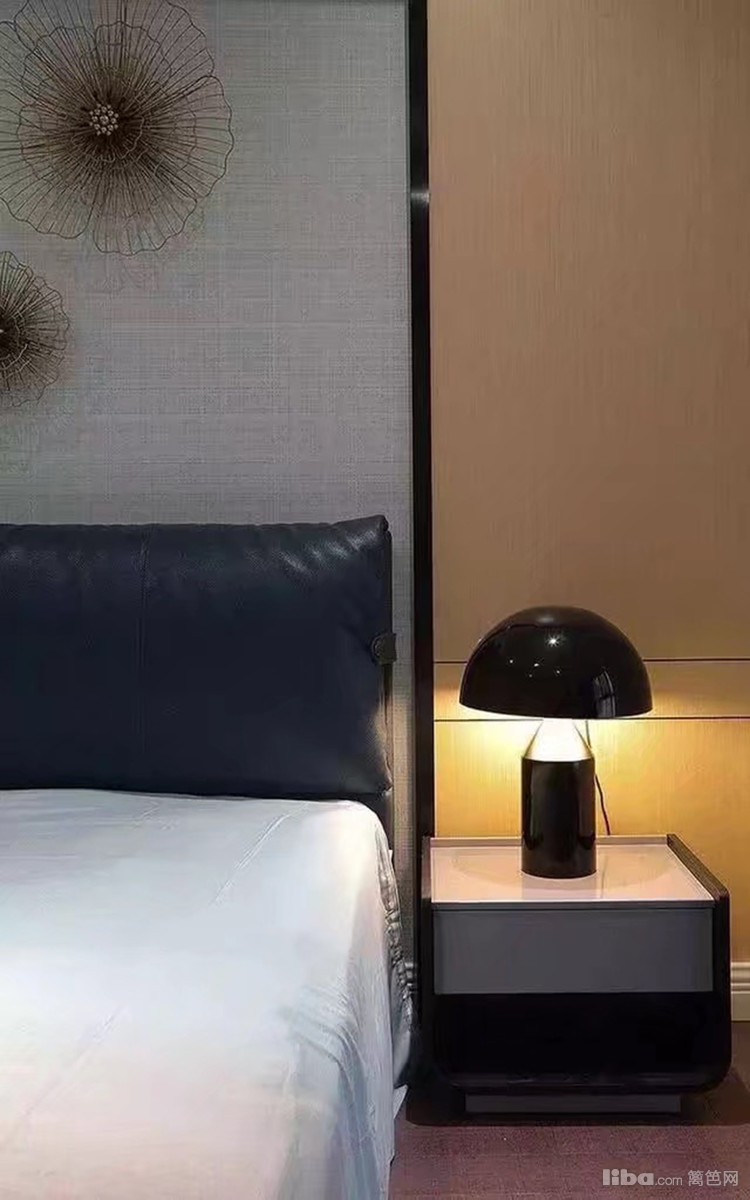 床头背景墙立体的花纹设计,精美别致,很有特点
