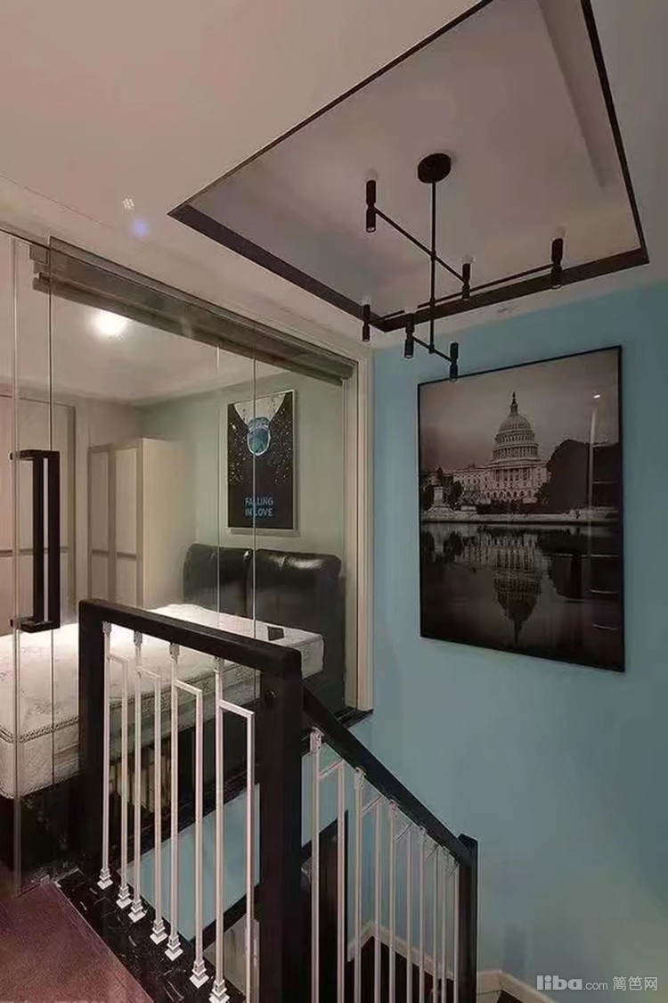 爬上楼梯,上面是一个次卧,用玻璃门隔断,平时主要是作为接待客人的客房